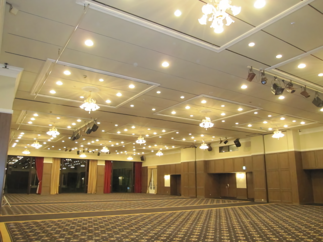 およそ400帖という広さもある宴会場の絨毯を敷き替え、また、照明を以前より明るいものにいたしました。絨毯を敷き替える作業はとても大変でしたが、気品と落ち着きのある宴会場に仕上がりました。