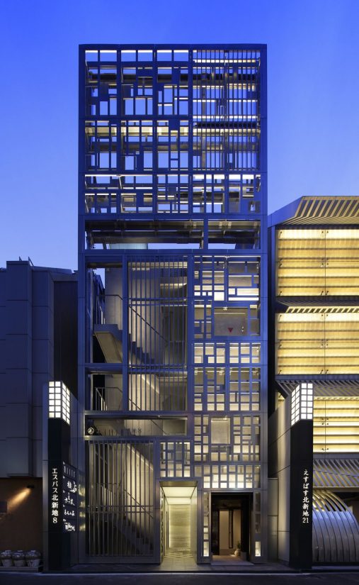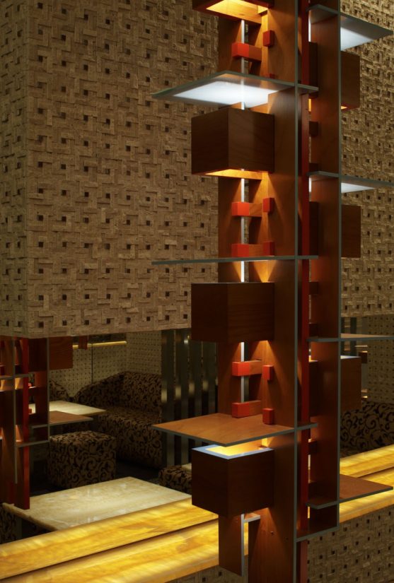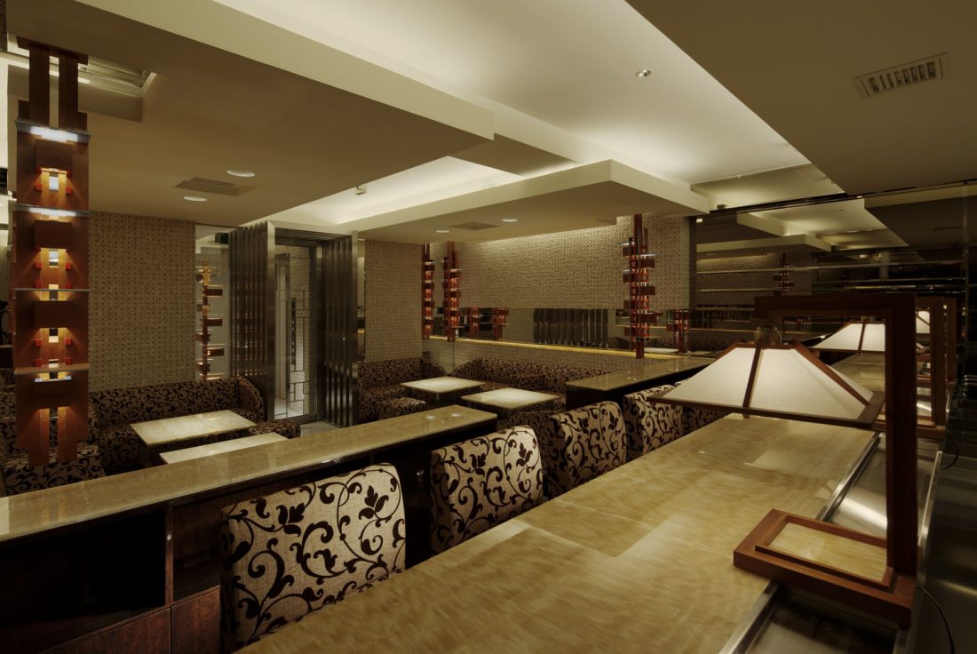 大阪の高級飲食店街、北新地の新築ビルにおいて、ラウンジの店装工事を行いました。 仕上材料は石をメインとし、シンメトリー(左右対称)の大変美しい空間となっております。