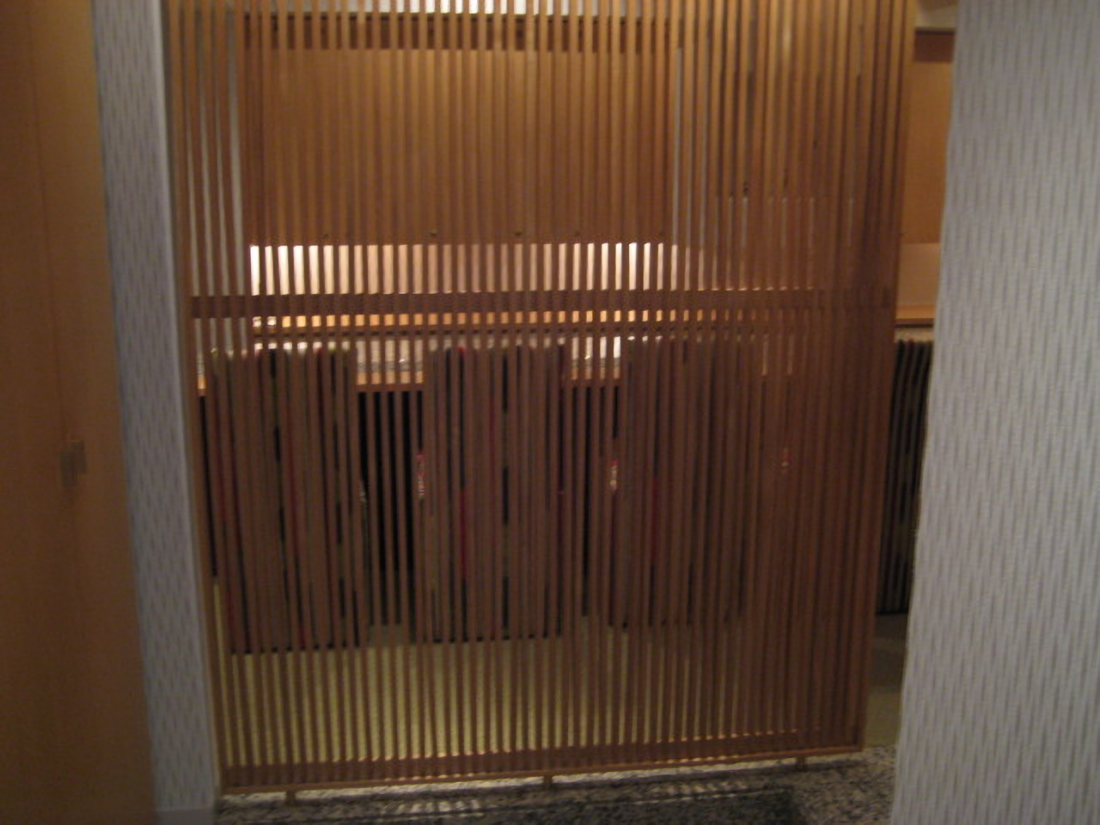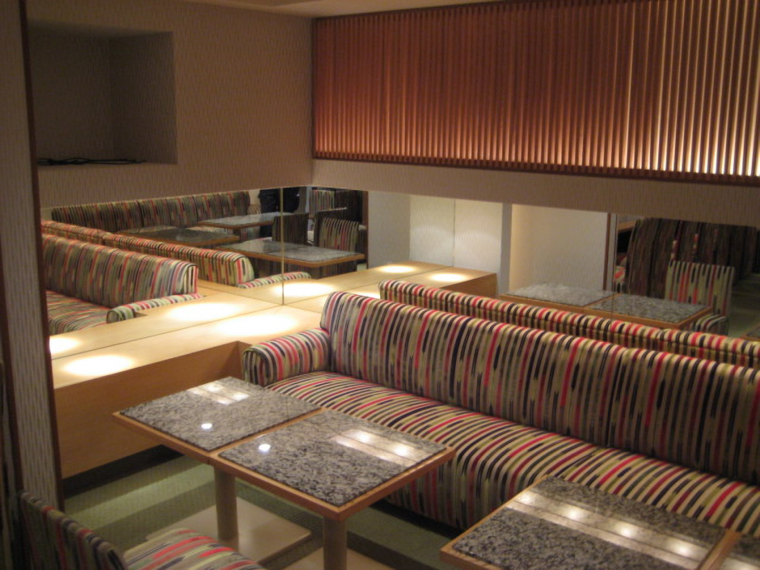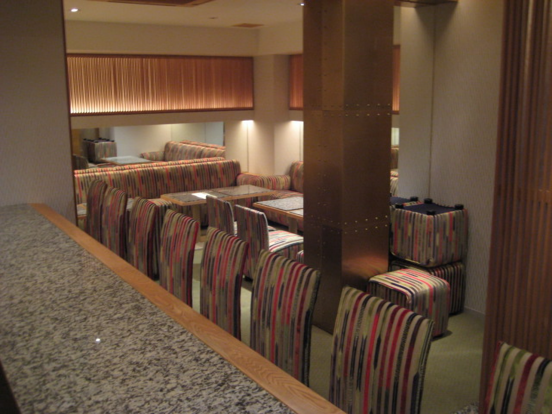 格子が特徴的な和の感じを活かし、気持ちの安らぐ内装に、カラフルなソファーがアクセントとなっております。北新地にマッチした上品な雰囲気のラウンジとなりました。