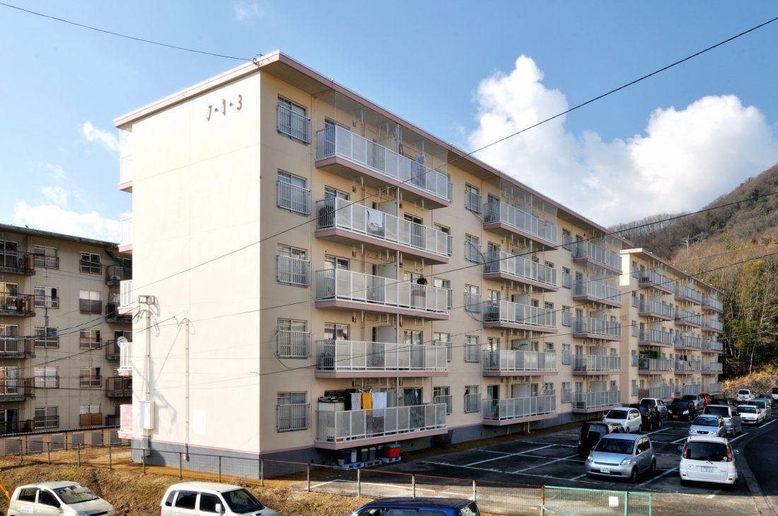 主な内容は外壁劣化部の補修・全面塗装、バルコニーと階段室のアルミ手摺新設、屋上とバルコニーの防水、物置棟の改修でした。外壁の補修はひび割れや錆鉄筋爆裂など劣化の種類に応じた様々な工法で補修を行いました。以前の建物より明るく艶のある仕上がりとなりました。