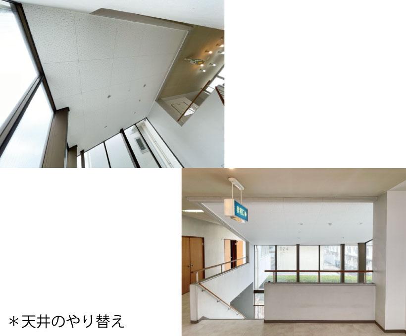 団地の中での改修工事という事で、解体の音による問合せが当初はあったものの、町内会長様、近隣の方々へ、工事に関する予定や内容を週間で説明させていただくことで、ご理解をいただき、また、施設利用者の方々には多大なる協力をいただき、事故もなく無事竣工することができました。