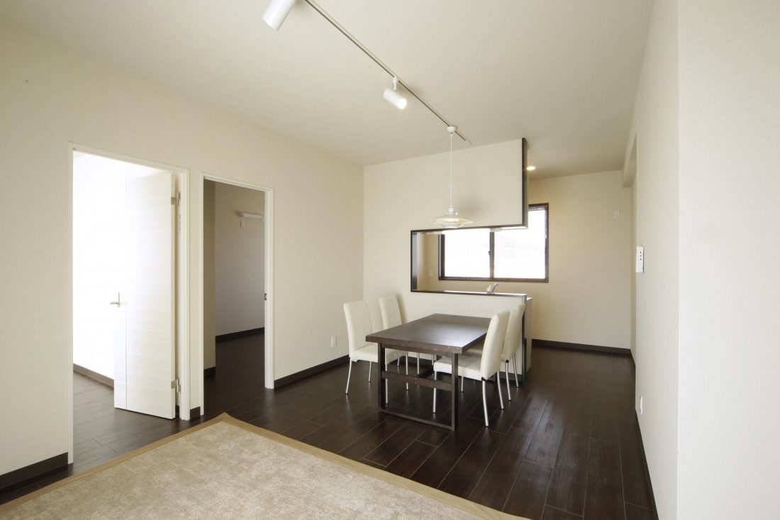 リビングの照明には、お住まいになる方のお好みに合わせて楽しんでいただけるように、複数のライトをレール上のお好きな場所に取付できるライティングレールを使用しております。