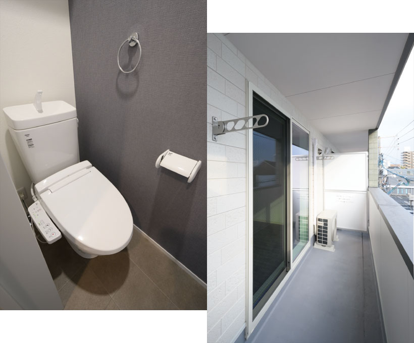 間取りは1K、リビングは広めの9畳を確保し更にクローゼットとは別のハンガースペースを設け収納量もかなり確保しています!