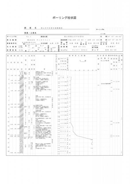 と言っても解らないと思いますので、参考にボーリング試験の結果報告書をご覧下さい。