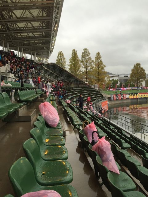 この日はホーム最終線なので、試合前に選手がボールを投げ込んでくれるのと試合後にセレモニーがあって、その時にも選手がサインボールを投げ込んでくれるということで、屋根がかかるかどうか際どい席で応援することにしました。
