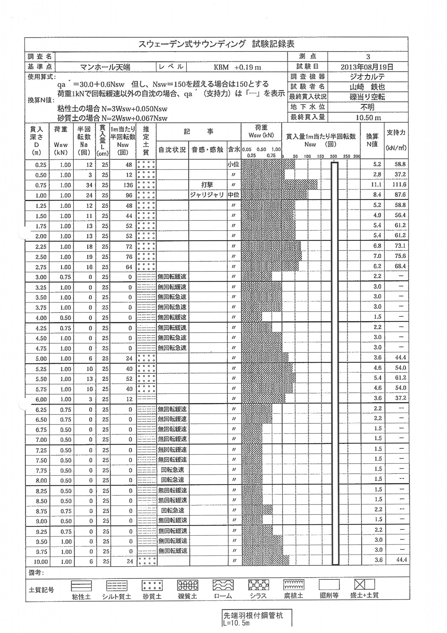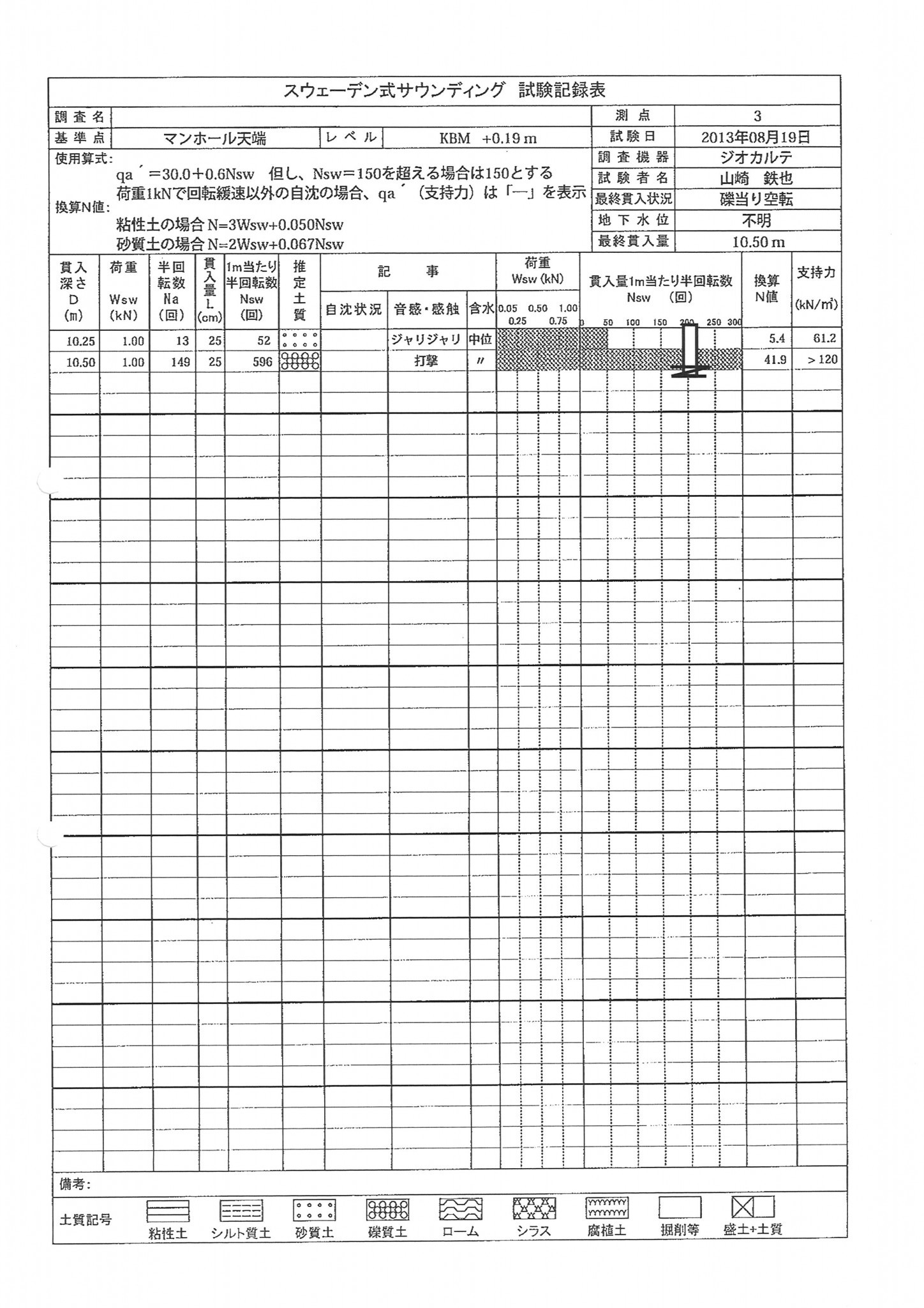 これは前回ボーリング調査を行っていた当社の管理地のカルテです。