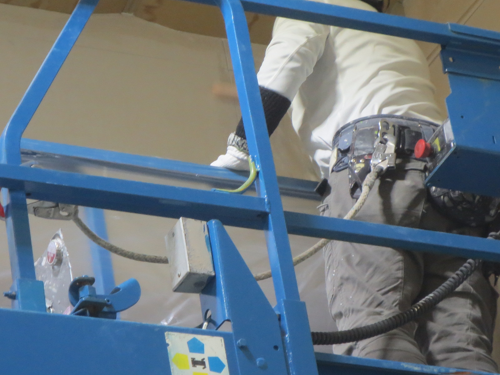 万が一転落したりすると死亡する危険性がありますから、命綱(安全帯)を掛けて安全管理もばっちりです。