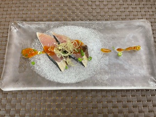 夜は民宿に泊まりました「シーサイドうわかい」といい魚を使ったディナーがコースで出てきます。