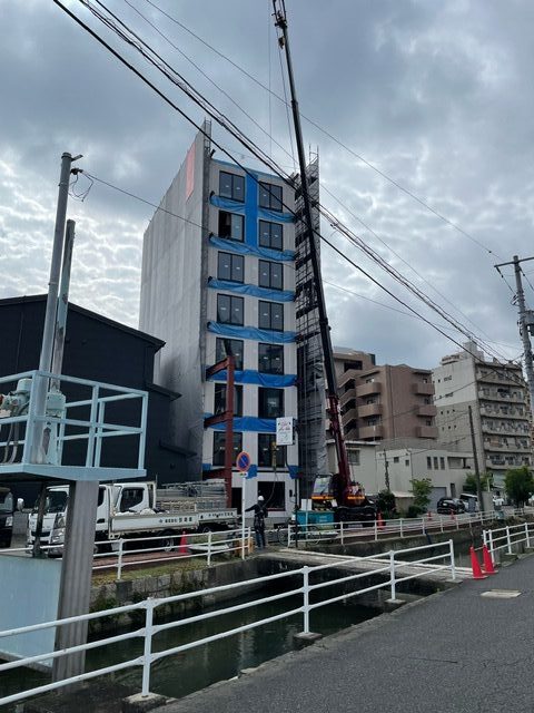 現在去年暮れに着工した8階建マンションが施工中です。