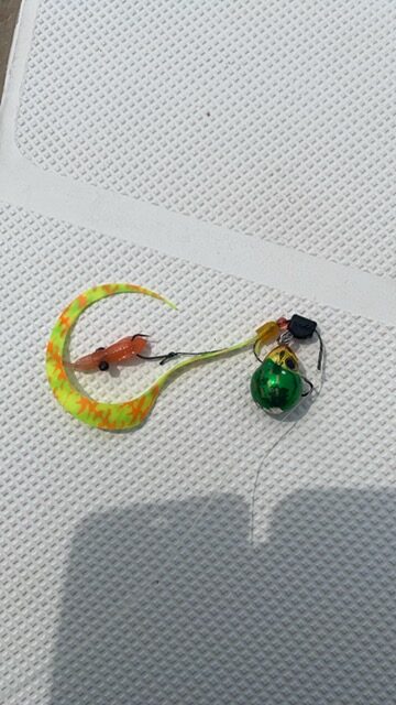 右の写真のタイラバというルアーで釣ります。