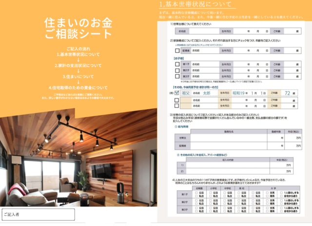 サンオリエントでは、このような▼ヒアリングシートをもとにお話しをお聞きし、