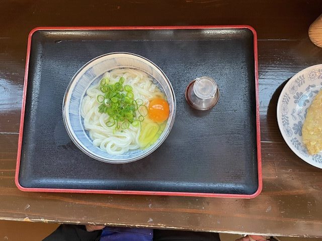 冬に訪問した際に頼んだ 釜玉うどん 水で絞めていない釜揚げ麺なのでもっちり度が倍増してました。