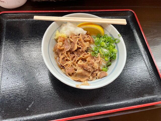 これが美味かった、カレーに負けることのない麺が最高でした、2回目は冬だったので冷あつでかけを注文、文句なく美味かった。