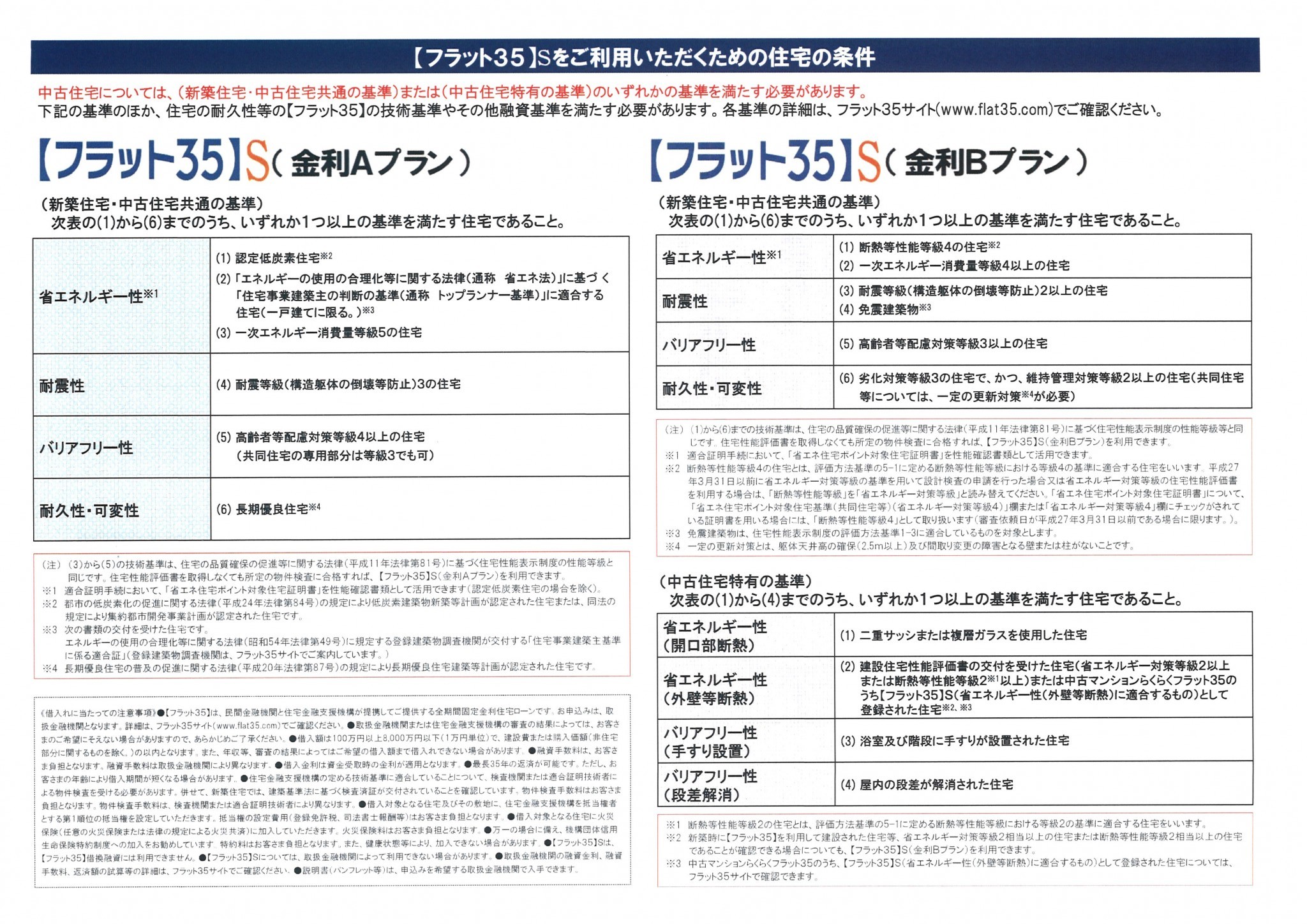 上の表で表されている左側の部分が金利Aプランとして認められる為に必要な仕様(性能)です。