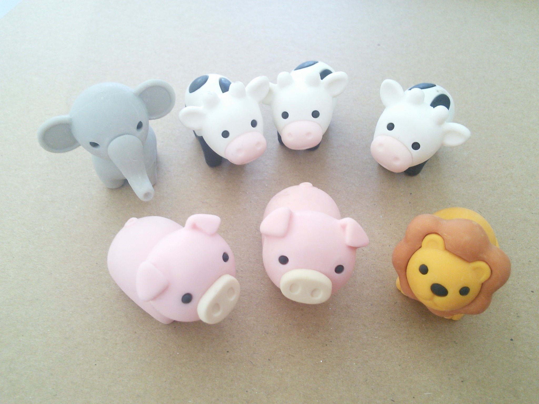 あと、うちの娘は園内の食堂で「ぴーちゃんカレー」を食べるのが好きです。おまけに【動物けしごむ】がひとつついてきます。しょっちゅう行っているのでこんなに集まっております。。。