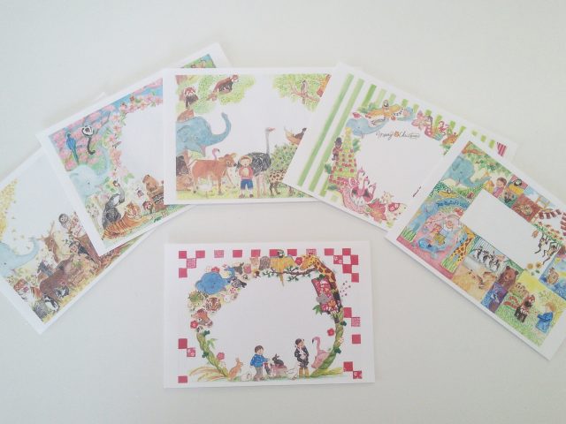 2、オリジナルポストカード ↓ 古山聡子さんという方が描かれた絵です。動物たちが優しく、たのしく、あったかく描いてあって、私も子供もとっても好きです。池田動物園のホームページの絵も古山さんが描かれているようで、季節ごとにいろいろ変わり、楽しみにしています。ご本人に一度お会いしてみたーいと思っているのですが。。。