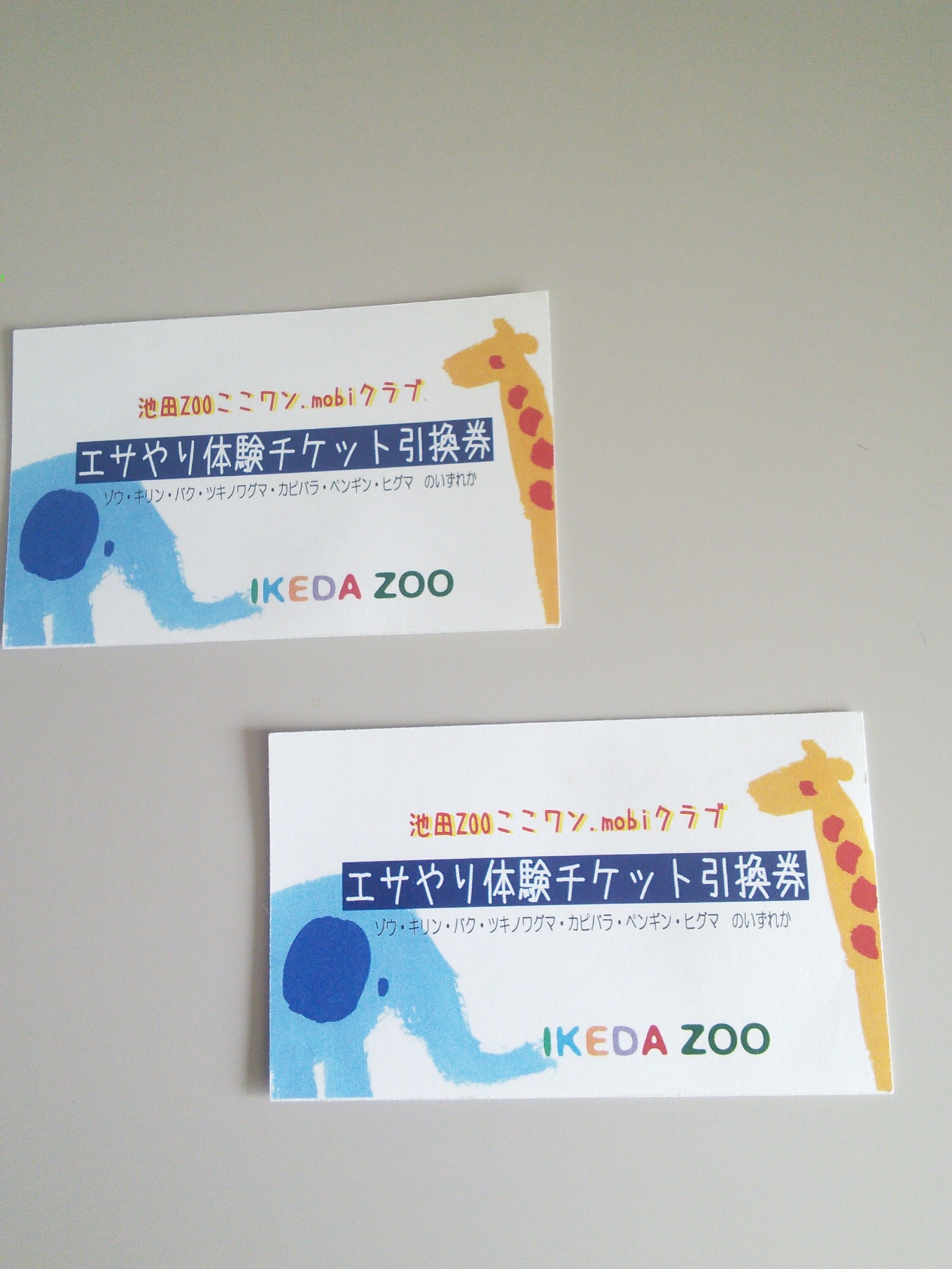 3、エサやり体験チケット引換券2枚(7回目)