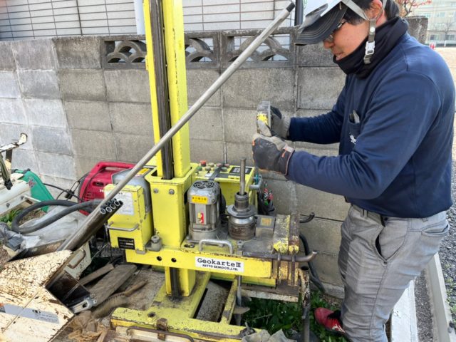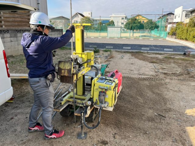 ▼サウンディング試験により地盤調査を行い