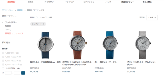 22STUDIOのサイトでは黄色やピンクの色のついたウキウキするコンクリート文字盤や中国の方向けと思われる、トラが浮き出ているデザインもあるし、文房具やオブジェ、指輪なんかもあります。