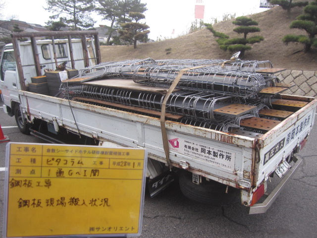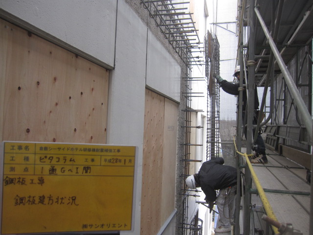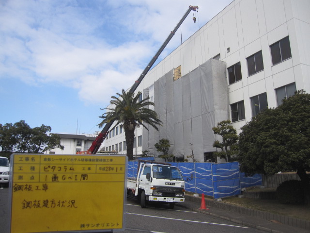 倉敷シーサイドホテル研修棟耐震補強工事 ピタコラム鋼板建方!