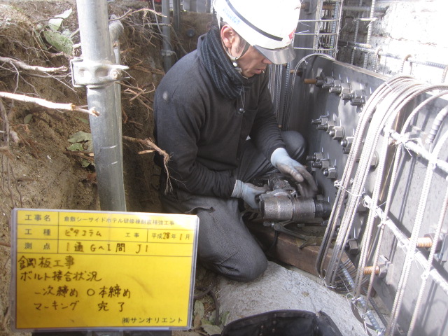 ▼建て入れ調整後鋼板ジョイント部を本締め接合していきます!