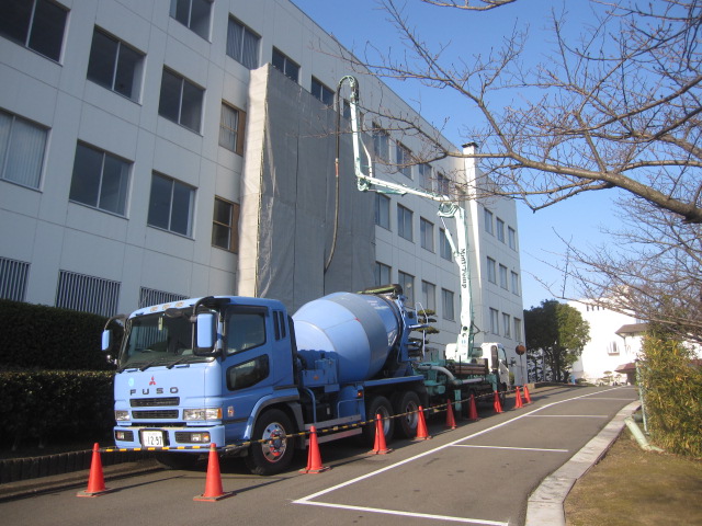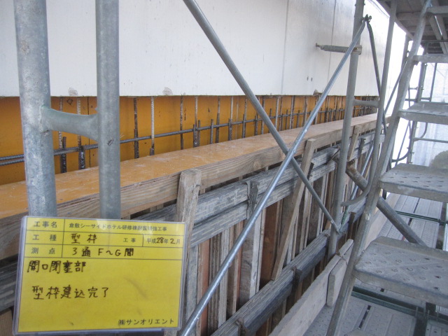 倉敷シーサイドホテル研修棟耐震補強工事 開口閉塞部生コン打設!