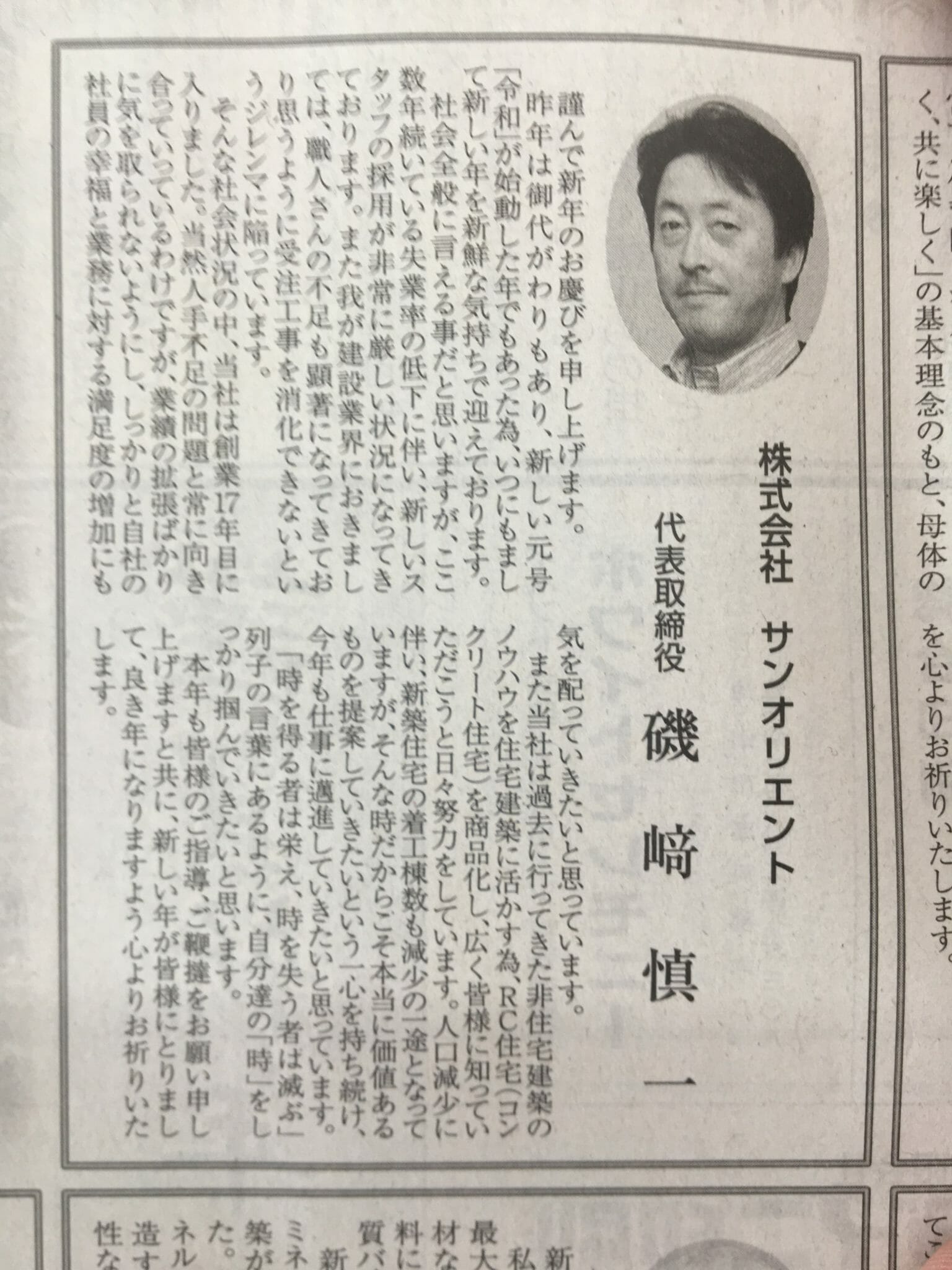 事業の規模としては全く大きくない当社ですが、RC住宅への取り組み等、他社とは一線を画した経営方針などにご理解を頂き呼んで頂けた様です。