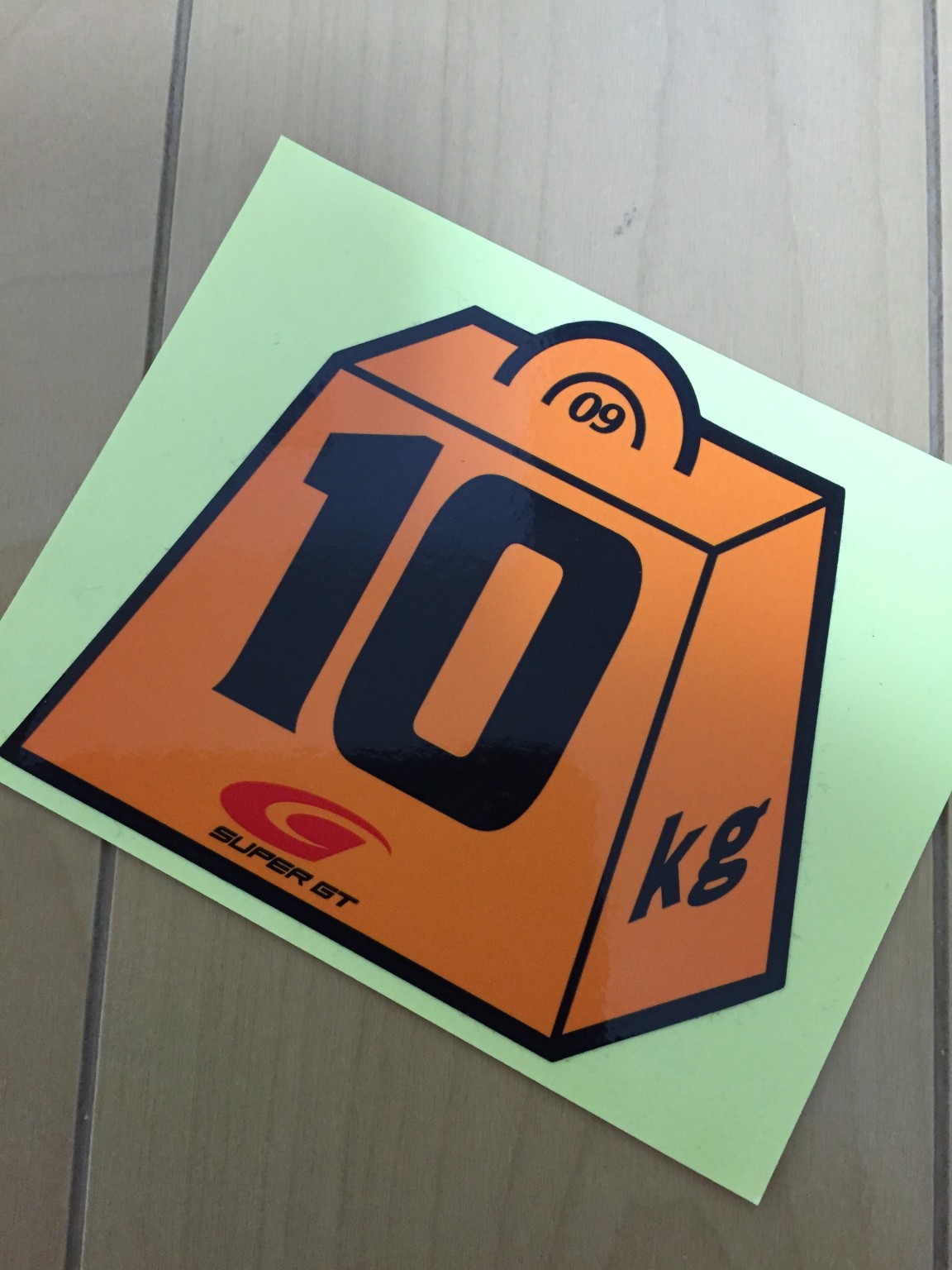 答えはレースの結果順位に応じて次戦からウェイトを積むんです、成績の良い車が重くなる仕組みで、レースをより均衡させる目的で積まれます、今この車がウェイトを何キロ積んでいるかに応じてこのステッカーが貼られます。