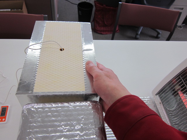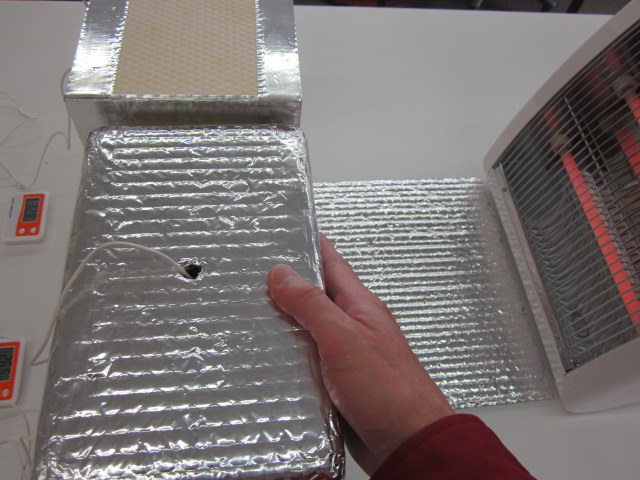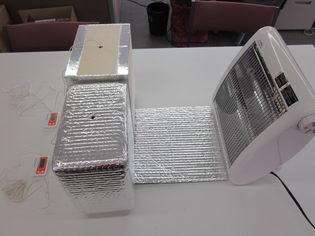 この両方の箱は電気ストーブから離れているので、熱伝導もおこりません。
