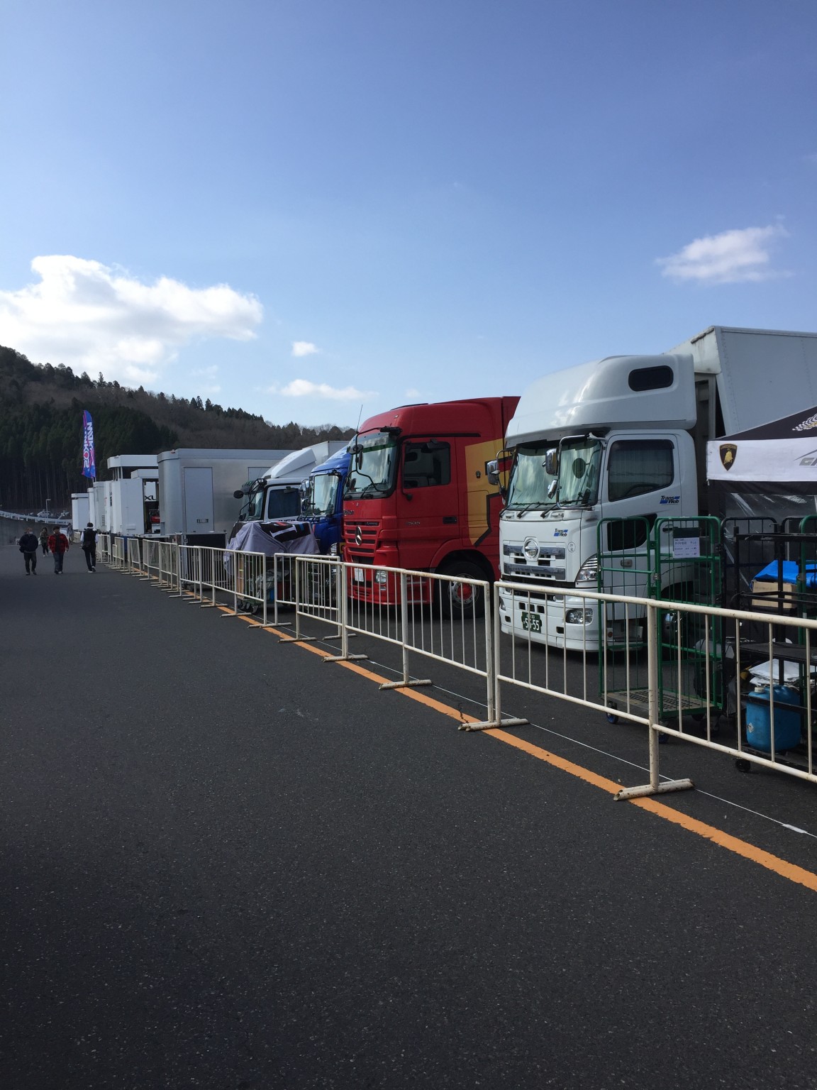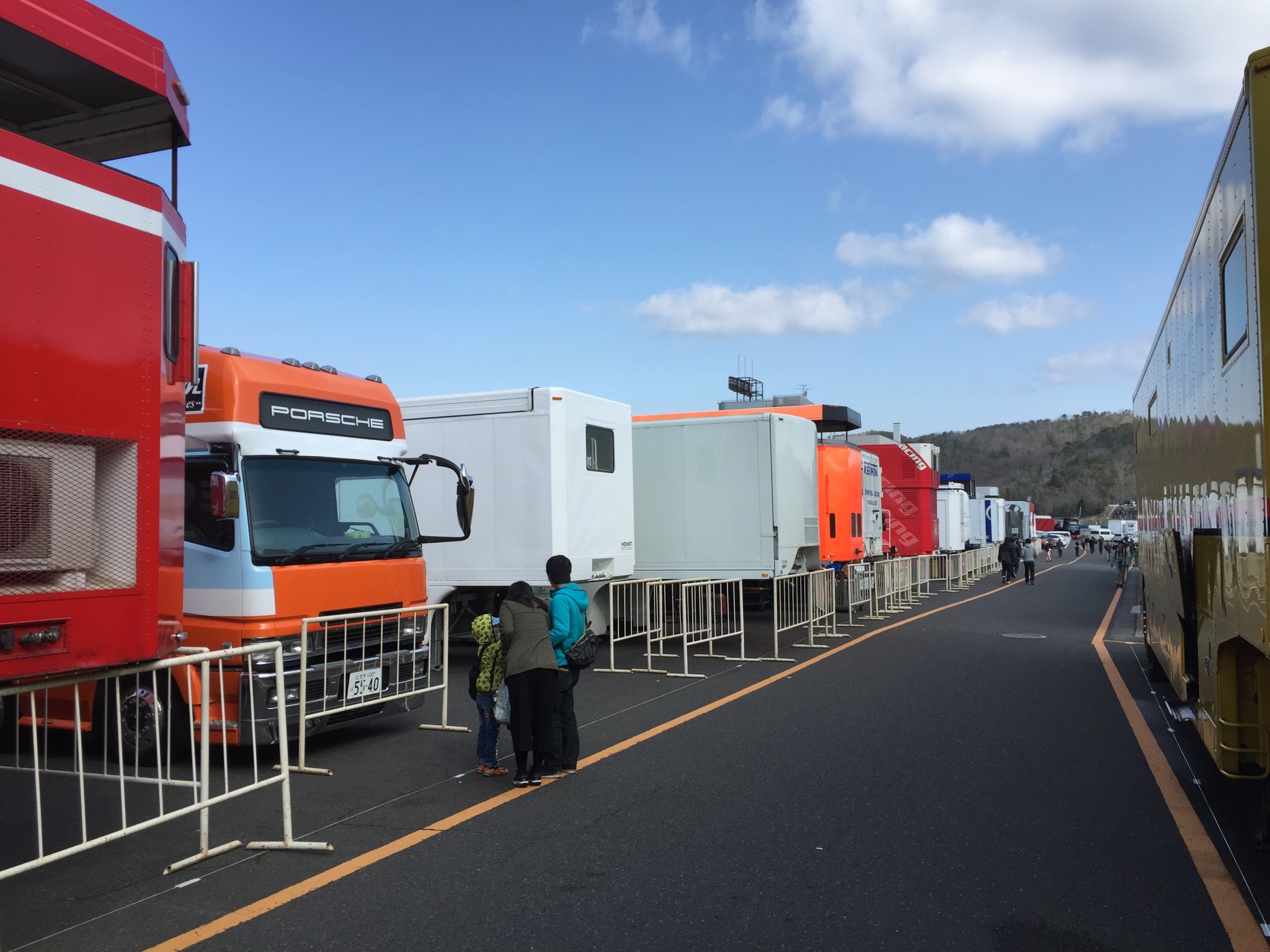ピット裏のパドックにはトレーラーがズラリ