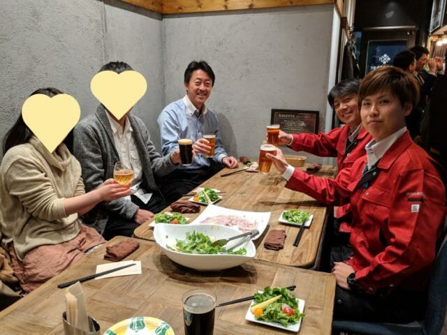 スタッフがもってるビールが①で、お施主様のご主人がお持ちなのが黒ビールです。