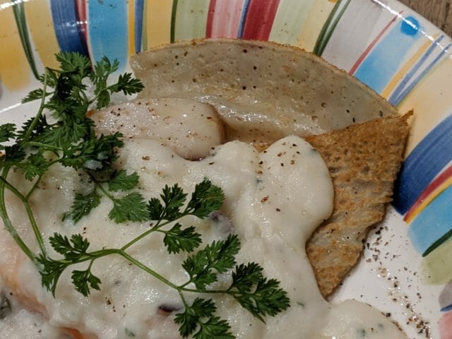 これは、ホワイトソースとシーフードなので、甘くはありません。]