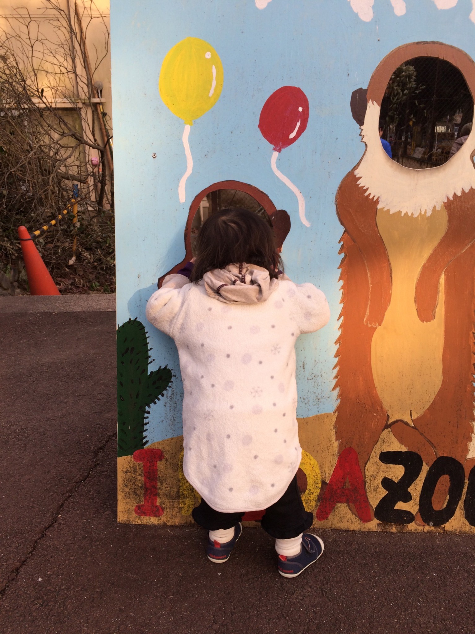 ↑↑この写真は保育園とは無縁ですが、池田動物園にておそるおそるフラミンゴに触る長男です!