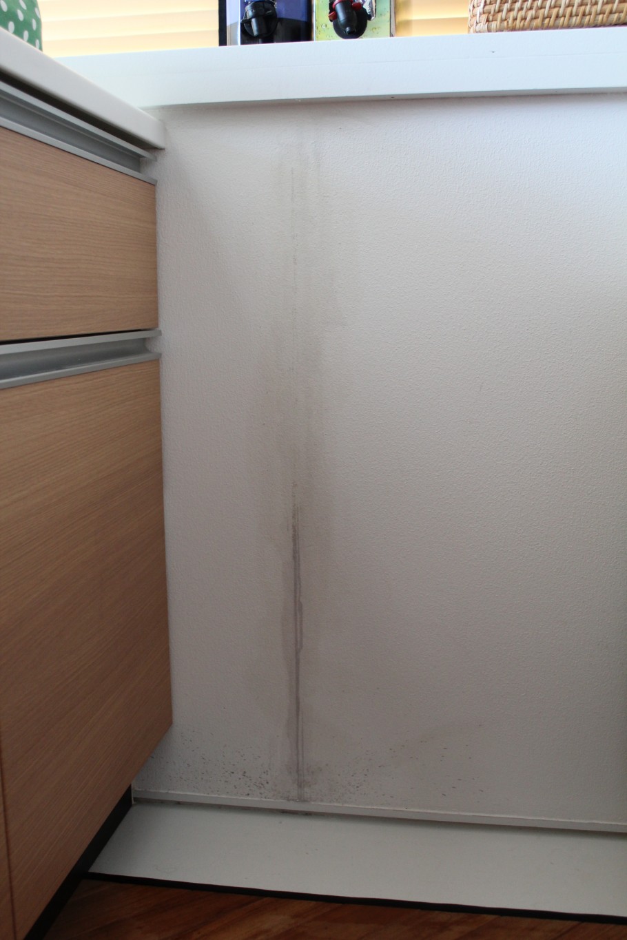 ▼出窓のとこに、ワインの箱サーバーを置いているのですが、そこから、垂れてしまい。床近くは大変なことに😭