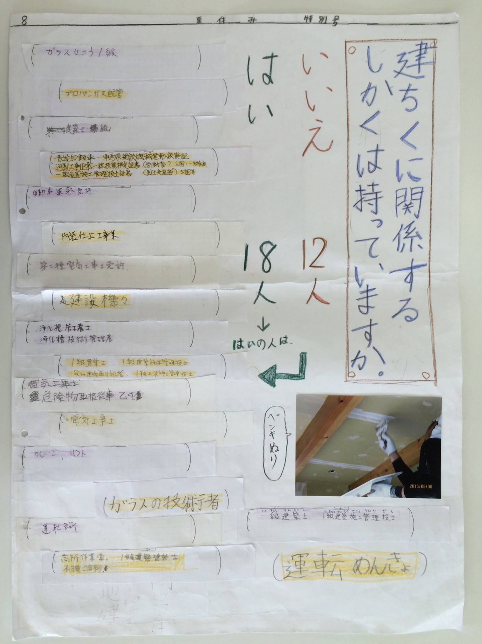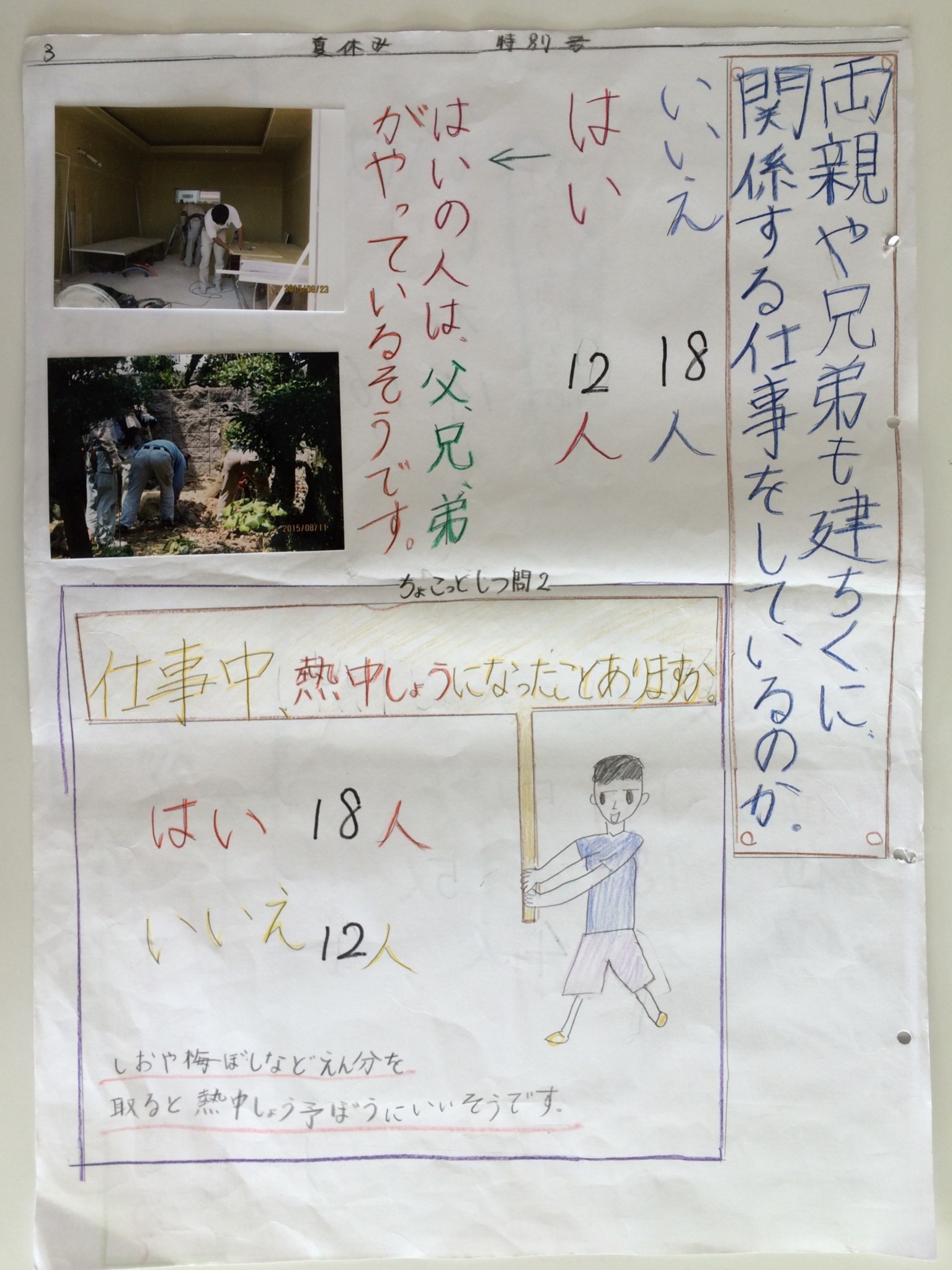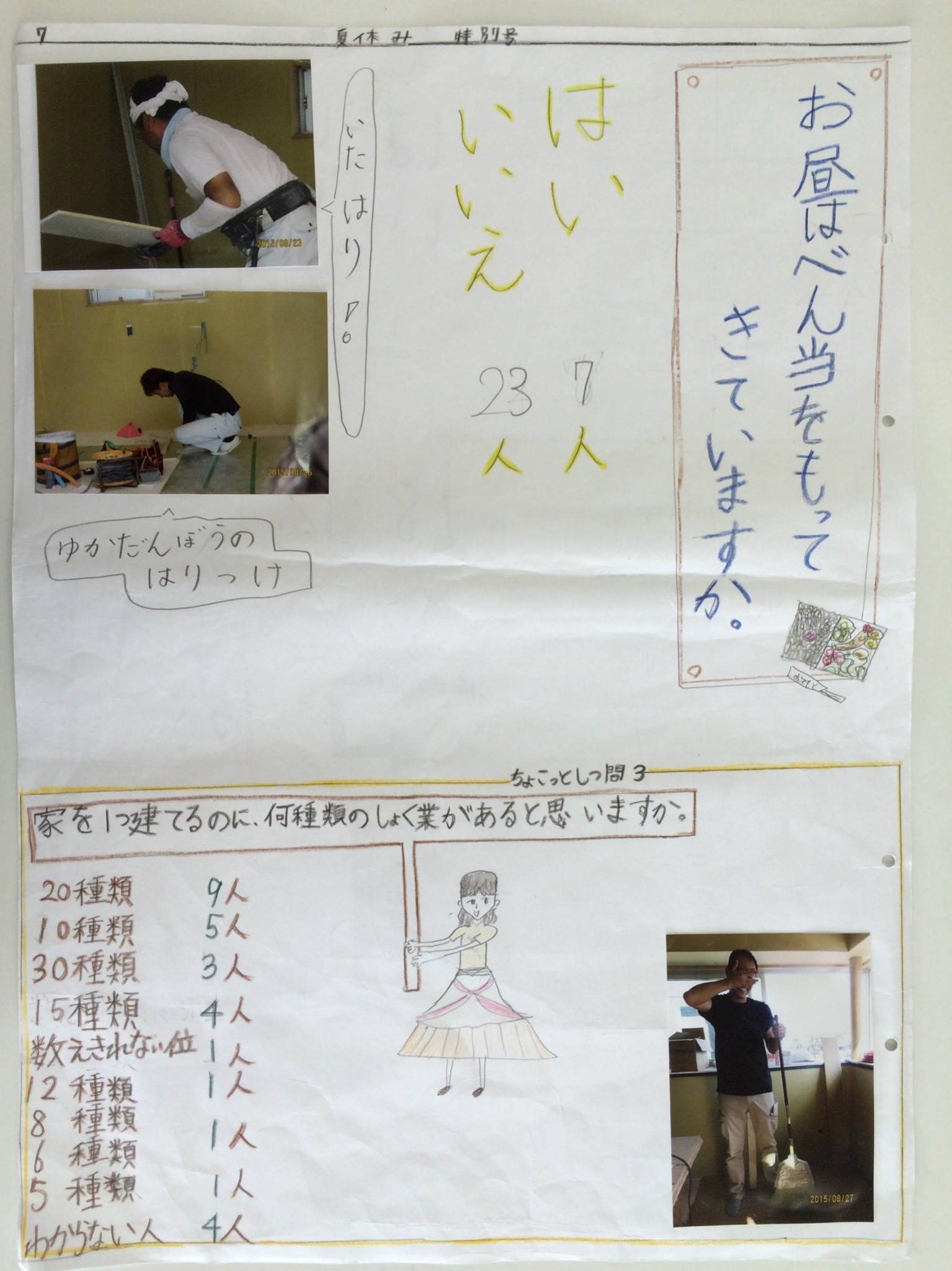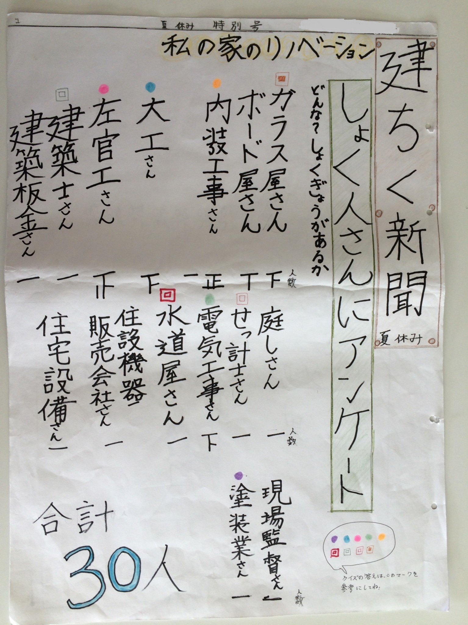 あたたかリノベーションのお宅では工事中に当時小学校4年生だったお姉ちゃんが職人さん達に取材して「けんちく新聞」なるものを作ってくれました。