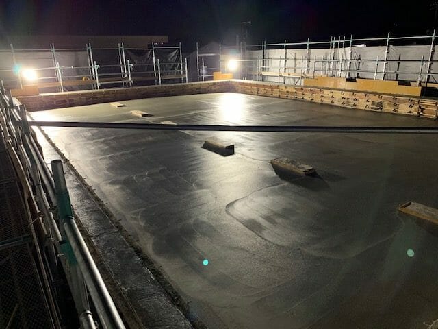 この日も夜遅くまで天端押さえを行い完了した頃には夜中の0時前ぐらいでした