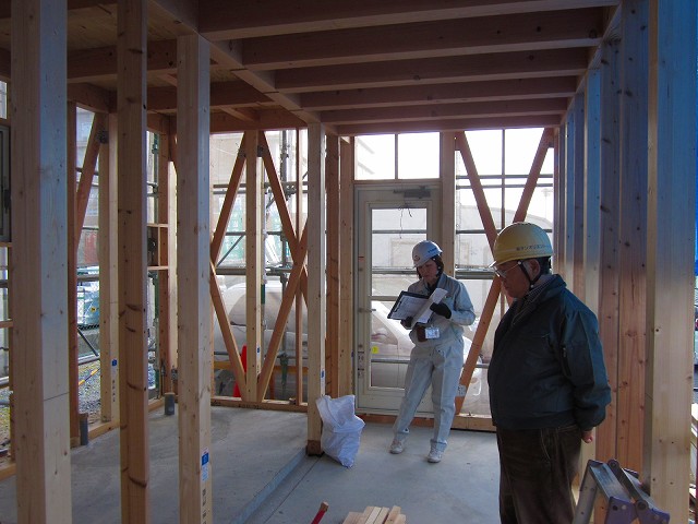 構造体に対しての中間検査で主に使用している金物や木材の使い方をチェックしていただきます。