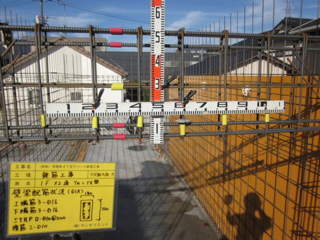 径・本数・ピッチが設計図の通り配筋されているか確認していきます。