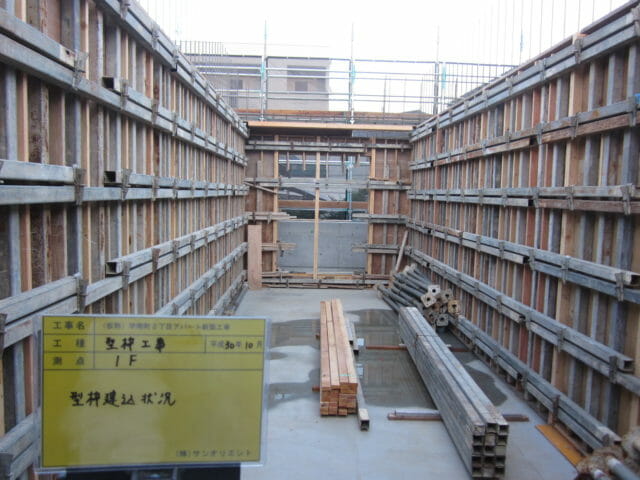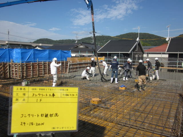 前回ブログで基礎工事まで紹介しました学南町2丁目アパート新築工事ですが今週は1階躯体工事の様子を紹介していきたいと思います!