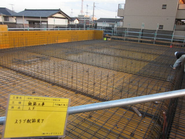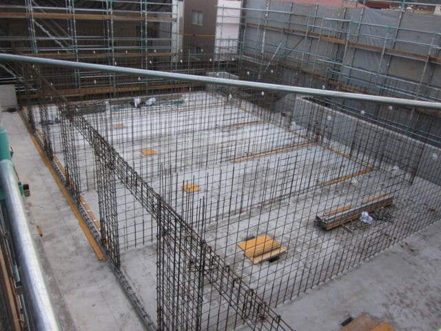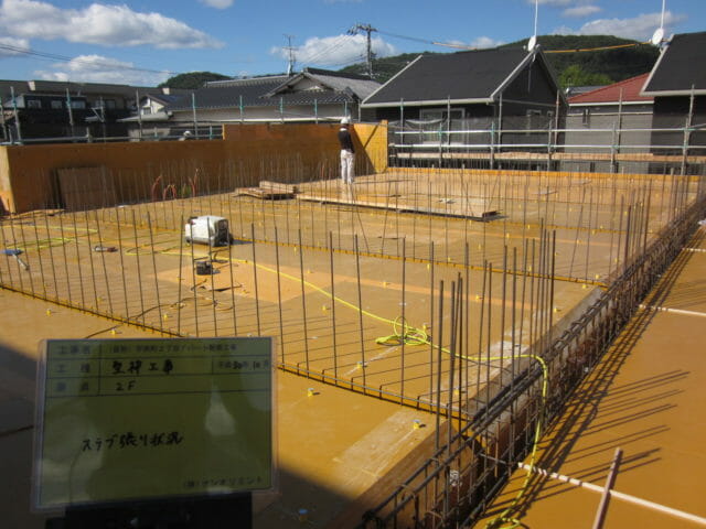 ▽スラブが張れたら次にスラブの鉄筋を組みます