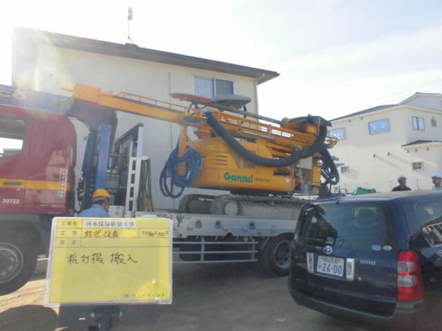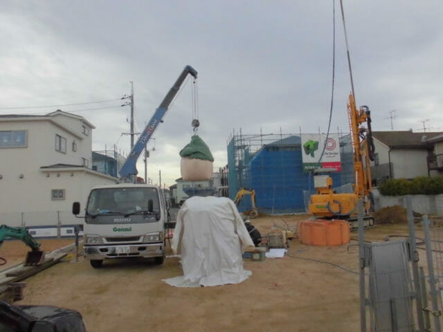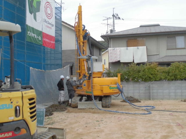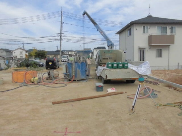 今は柱状改良杭の施工中で今月いっぱいはかかるでしょう。