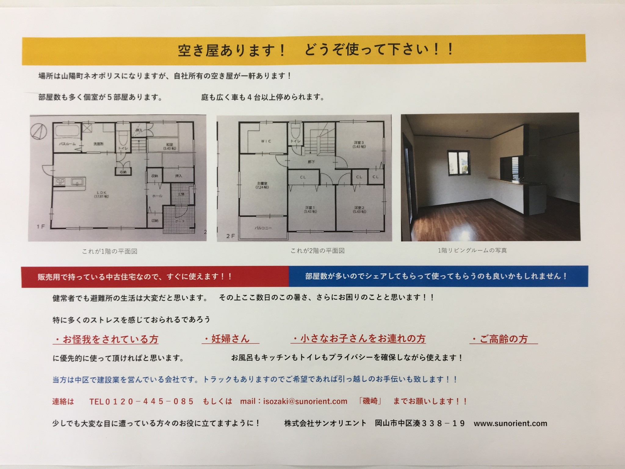 さて、そうは言っても自分達にも何か出来ないかと思い、先週のブログで山陽町ネオポリスの中古住宅を使って頂こうと記事を書きました。