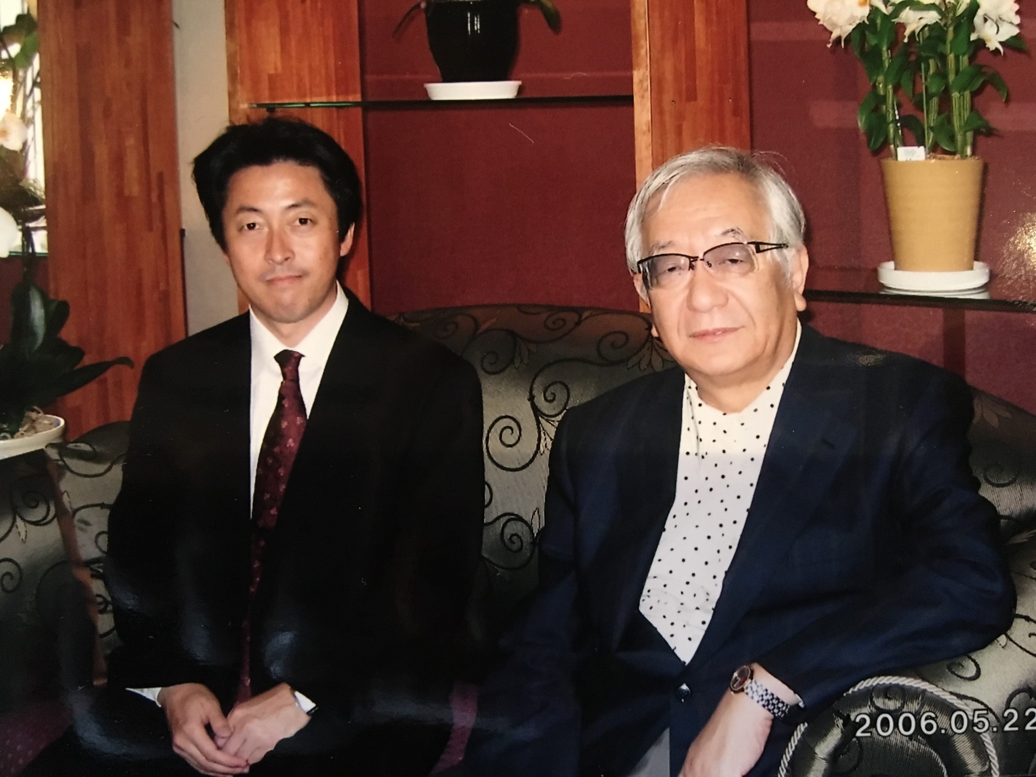 小さなワンルームマンションから今の事務所に移転した時、お祝いに来て下さった先生と、まだまだ若い僕(^_^;)