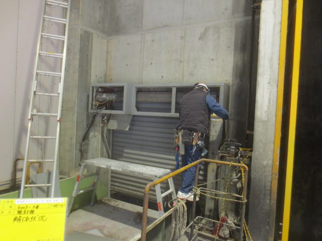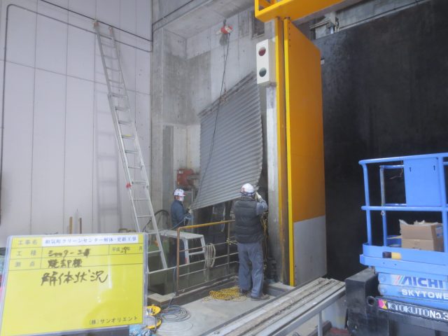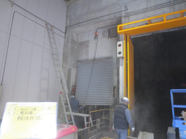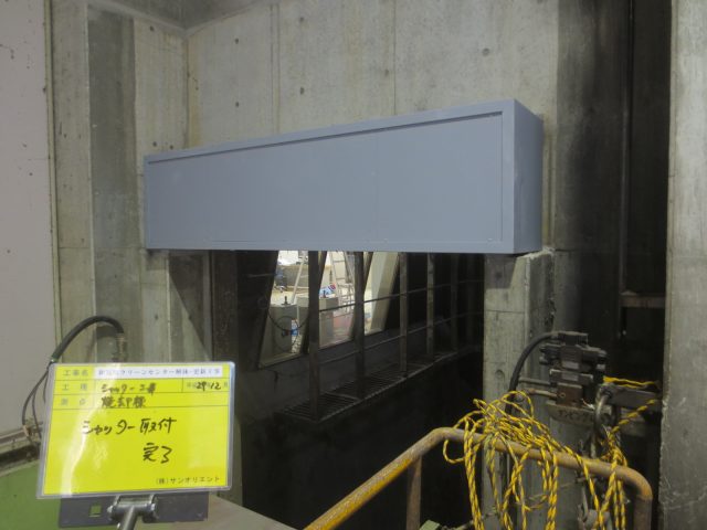 年末は、和気ではシャッターの取付を行いました、ゴミを乗っけるリフターと連動のシャッターなので複雑な配線が必要みたいですが、