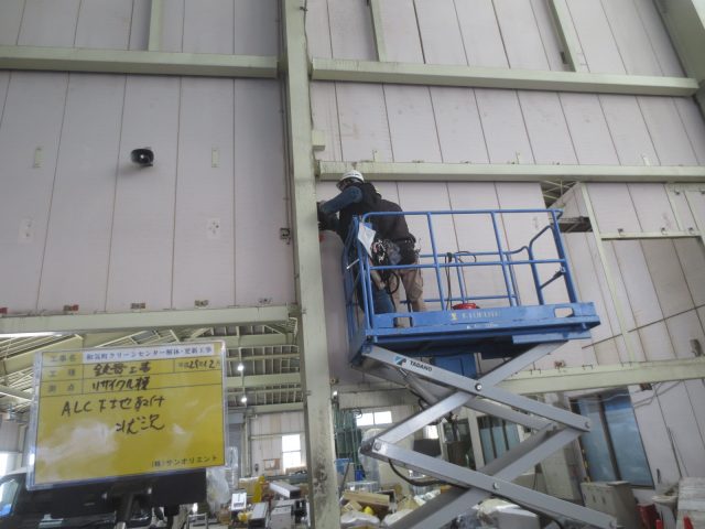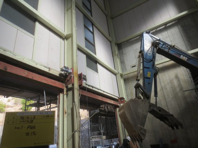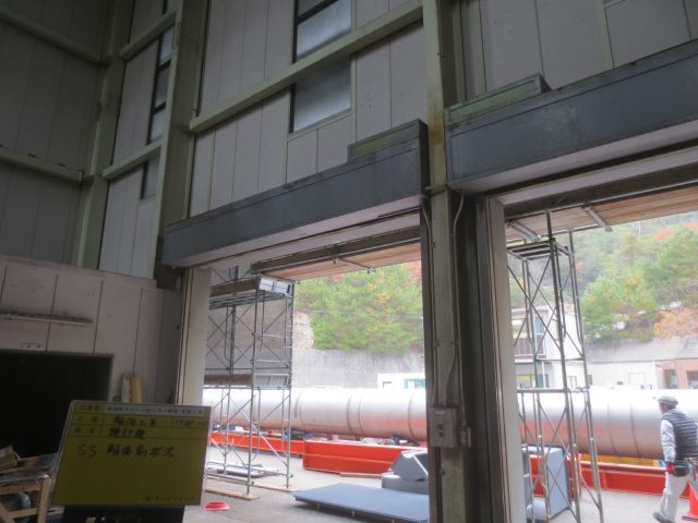 工事は、いよいよ大詰めで重量シャッターよALCの外壁などを解体し、遣り替える工事に突入しました。