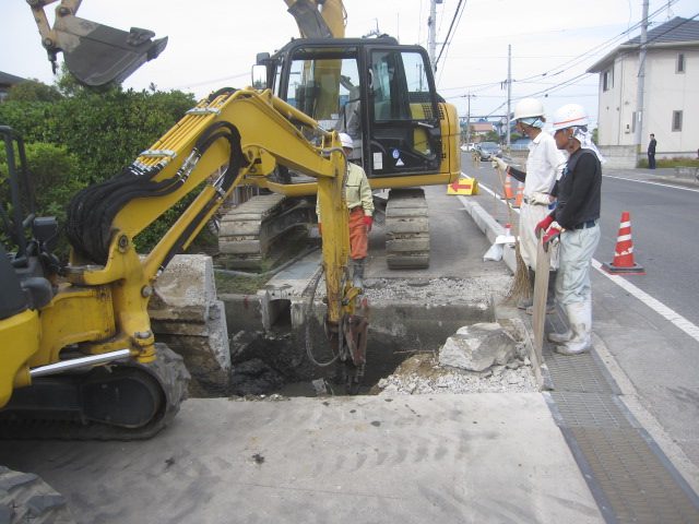 今日の作業はここまでで終了です、この場所は小学校の正門の前ということもあり児童や学校関係者の通行が盛んな場所になるので工事エリアの区画の徹底・通行者の安全誘導を第一に事故の無いよう安全に工事を進めていきたいと思います!