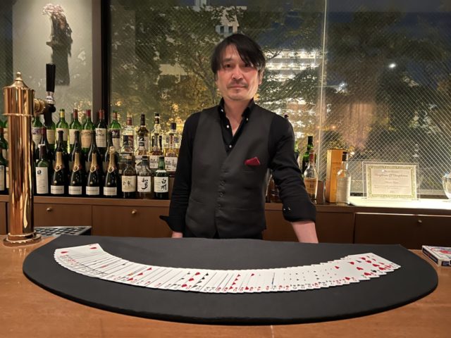 ▼二次会は西川が見えるバーへ。手品してもらいました!