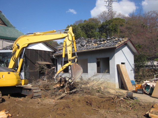 泣く泣くこの木も撤去し古い建物の解体を開始しました!