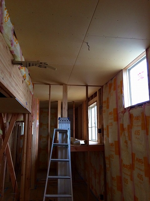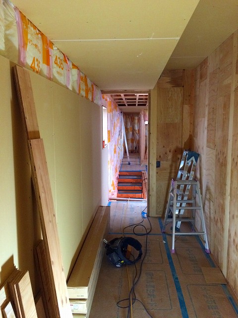 現場の方ですが、順次内装のプラスターボードも貼りあがっていっています。