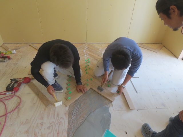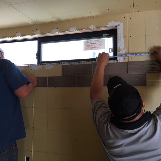 大工さんの工事も今週まで、今日から左官さんが壁の漆喰下地に、先週末から今週頭にはタイル工事が完了しています。